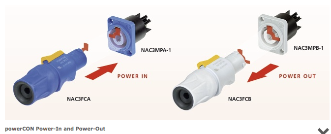 Neutrix rund kontakter för ström, anpassad för att inte kunna kortsluts. Avsedd för AC