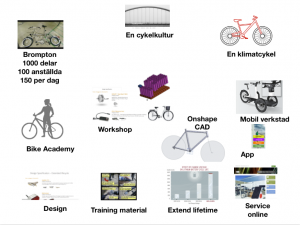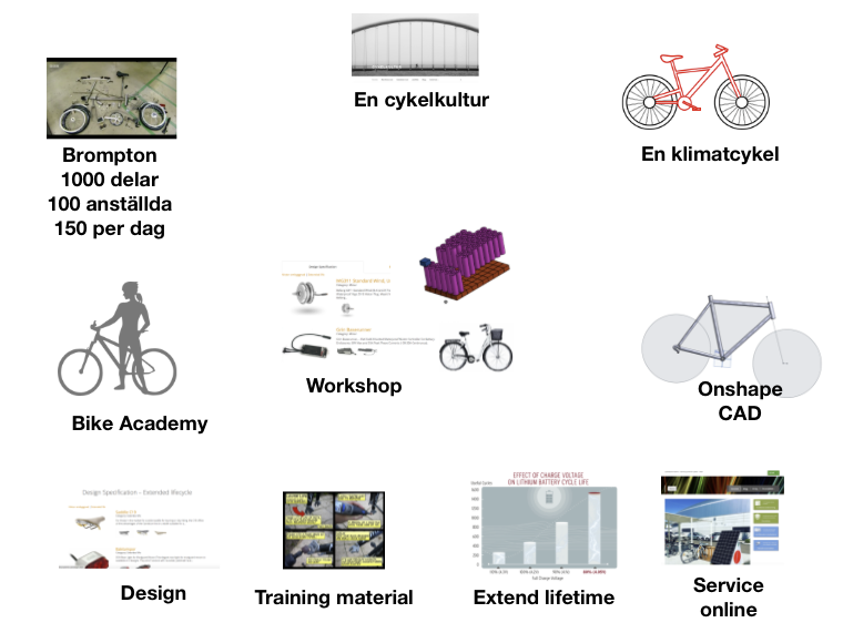 En klimatcykelEn klimatcykel designad för att skapa arbetstillfällen lokalt och tillgodose brukarens önskemål i första hand. Använda en logik anpassad för cirkulär ekonomi för att kunna bygga en hållbar affärsmodell kring ett förnyelsebart energisystem baserat på förnyelsebara energikällor som solenergi. För att veta vad som fungerar och vad som ute fungerar, har vi valt att ta fram en referensmodell för Klimatcykel. Alla delar kommer undersökas och kan jämföras med andra liknande produkter avseende livslängd och kvalitet