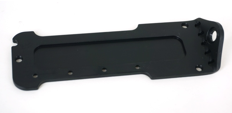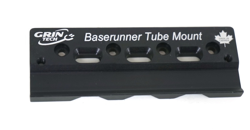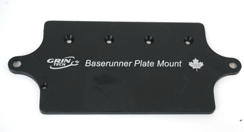 | A flat flange mount with screws on either end for bolting the Baserunner to a flat surface, used in our Wheelbarrow kits. | A fork mounting plate with a bend and hole in it to attach to the fender bolt of Brompton bicycle or other forks, with baserunner sitting just over the fender. | A universal tube mount that makes it possible to zip-tie the Baserunner to any round bicycle tubing. |