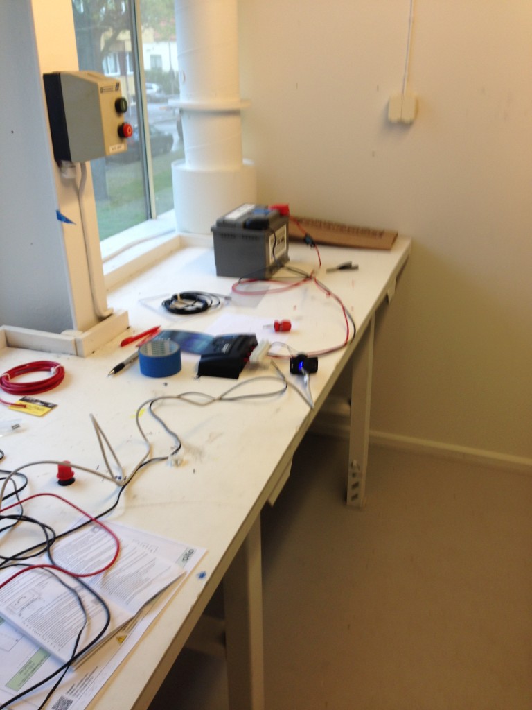 Först plockade vi isär vår laddningsregulator för att se vad den innehöll. Därefter så monterade vi ihop alla komponenter vi köpt och lyckades få allt att fungera.