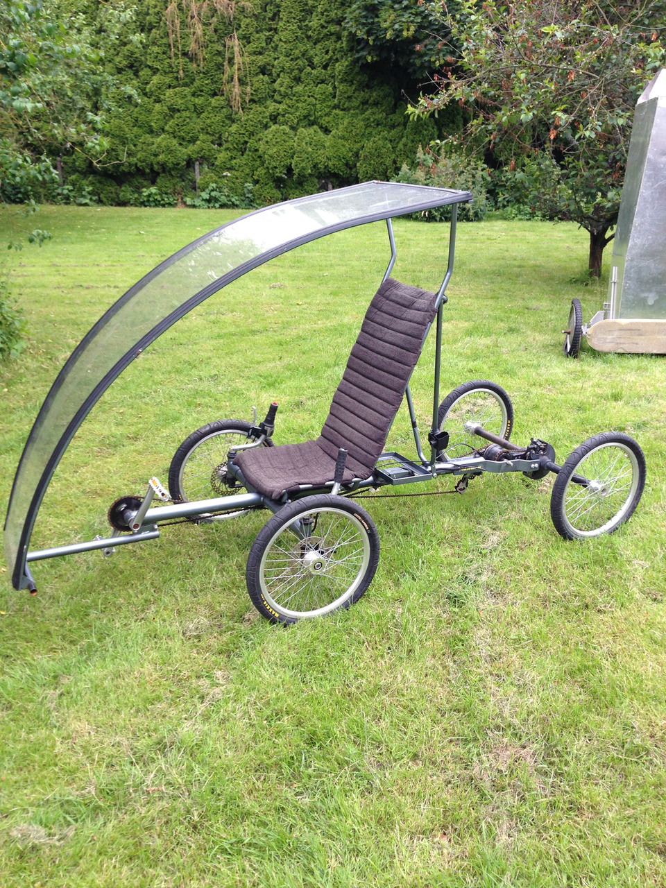 Nu har vi fått tag på ytterligare ett mobilt labb. Ett 4-hjuligt fordon som drivs med trampor. Har 7 växlar och har plats för olika typer av testutrustning. Vår avsikt är att montera någon typ ev elektrisk motor som hjälper till för att driva. Naturligtvis att laddas av solceller. Sen tänker vi oss att montera elsystem, sensorer och annan elektronik som kan bidra till komfort och körglädje. Som mobilt labb så ser vi detta som en mockup/prototyp snarare än den färdiga produkten. Här kan man testa olika lösningar både teknikverifiering och användarupplevelse.