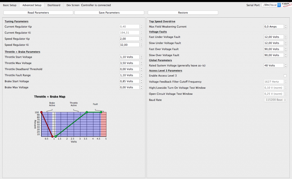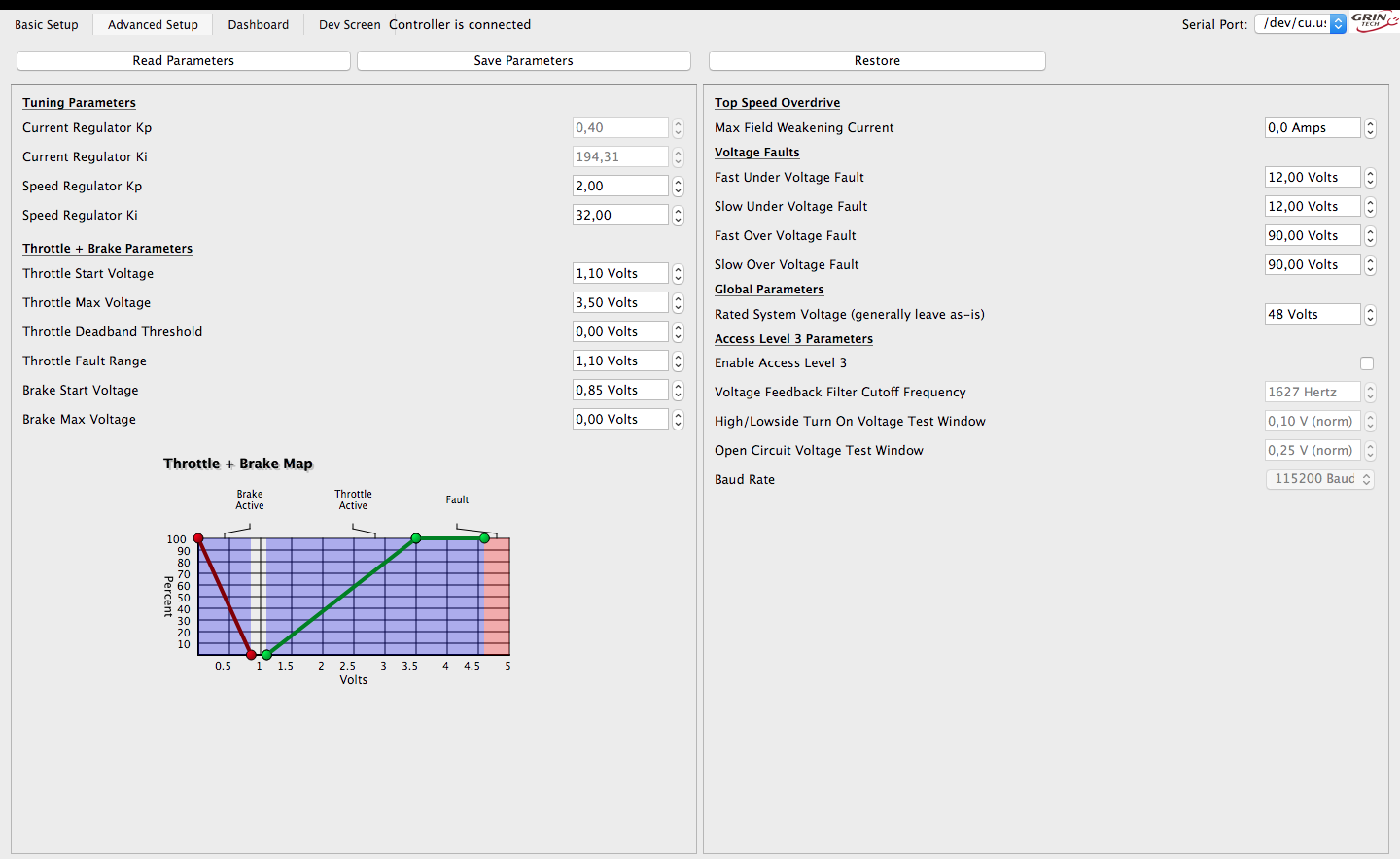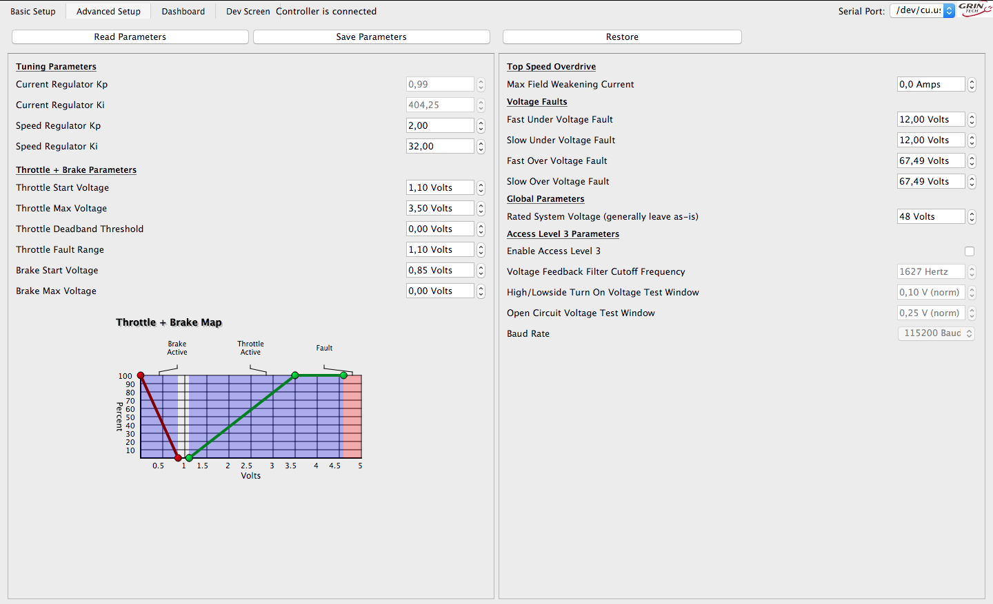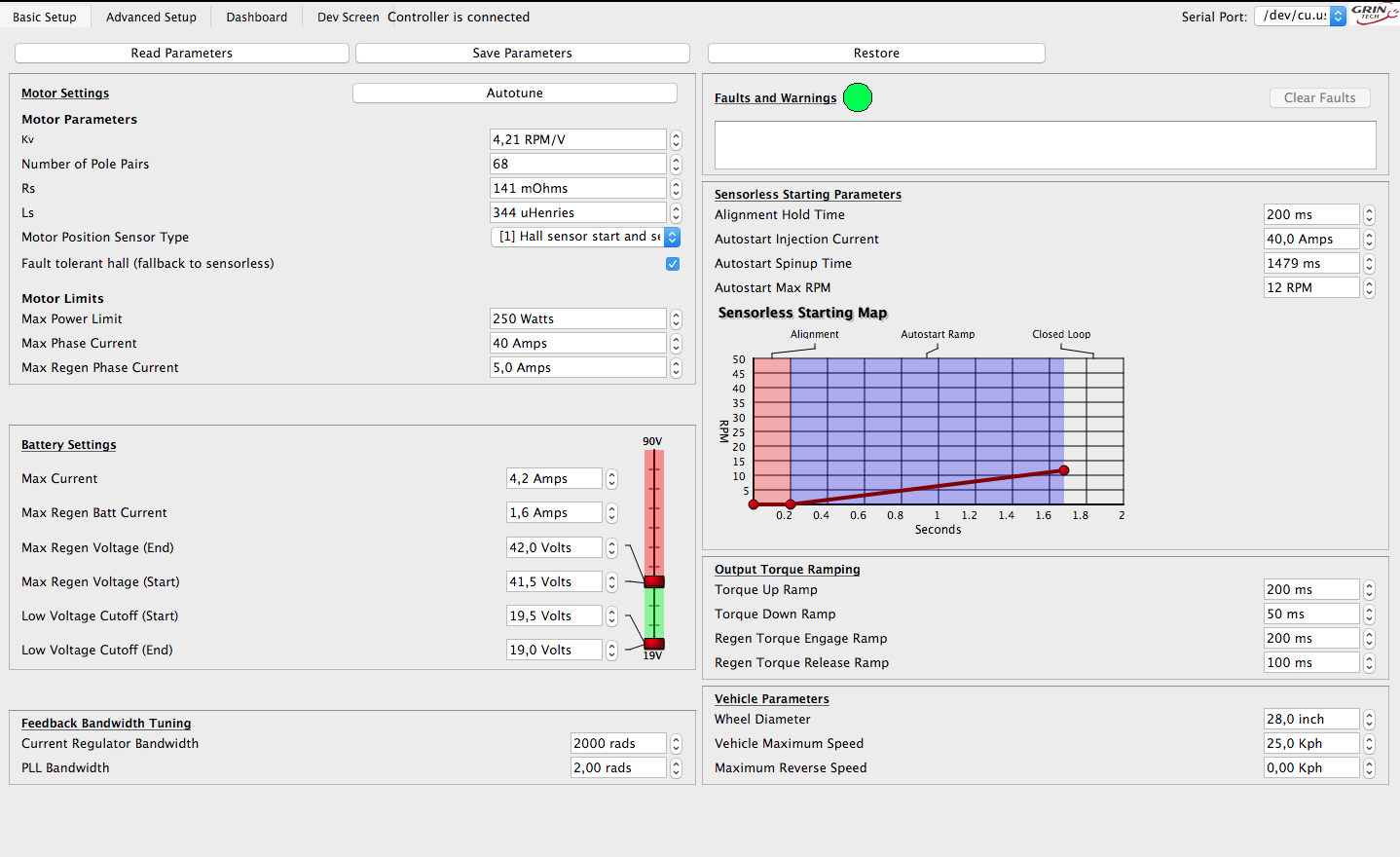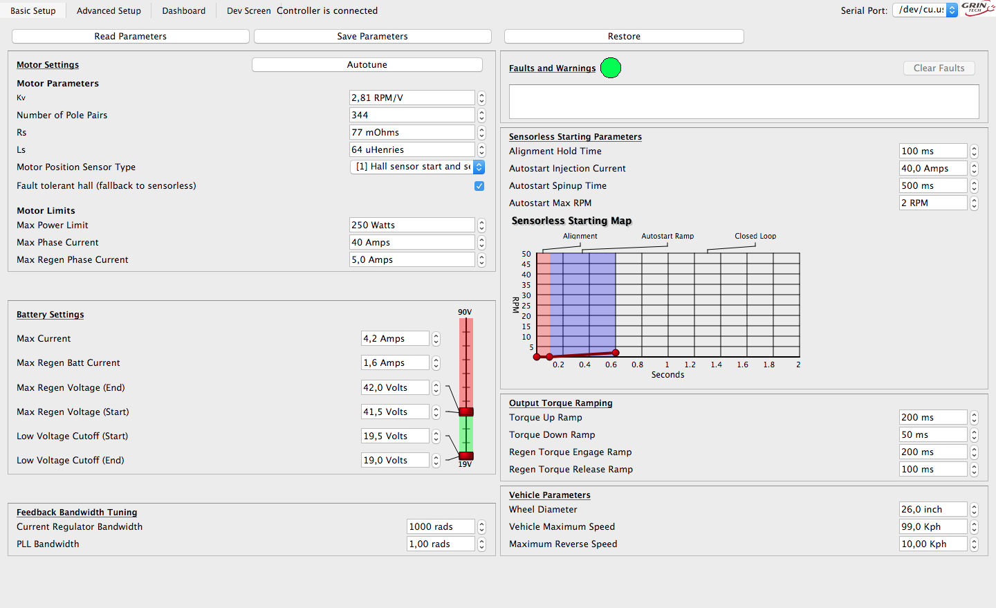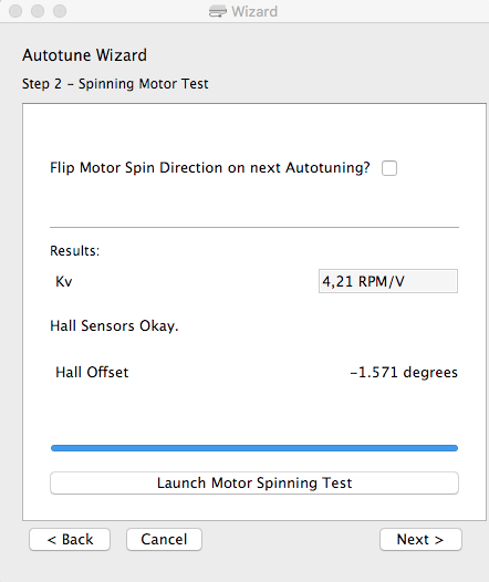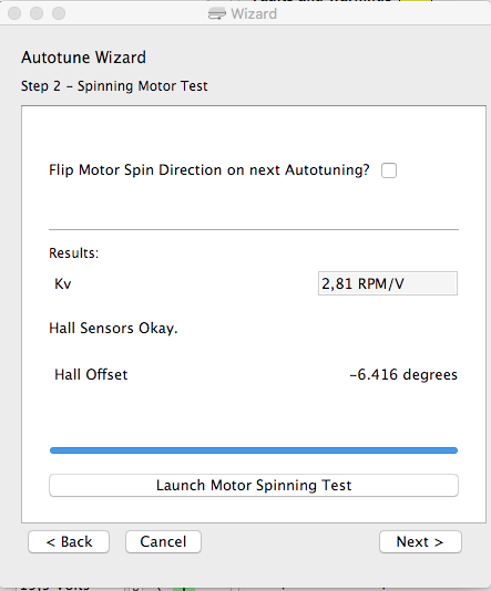 Följande motorer provkördes och kalibrerades med Autotune. Nedan stående tabeller visa