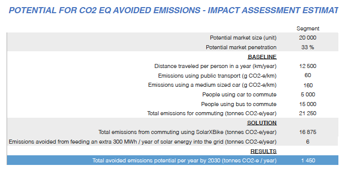 If for example 30% of the trips replaces bus and 10% replaces car, about 300 tonnes CO2 / 1000 E-bikes In addition to that, around 300 MWh / year of solar energy would be fed into the grid.