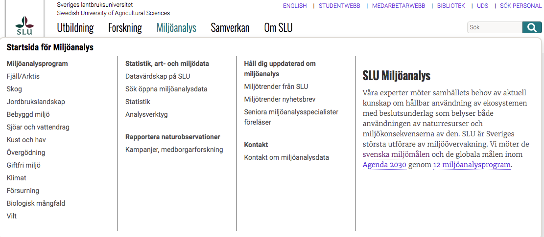 Why(konsekvenskedja): SLU >> Försöksanläggning >> miljöövervakning >> Svenska Milömålen